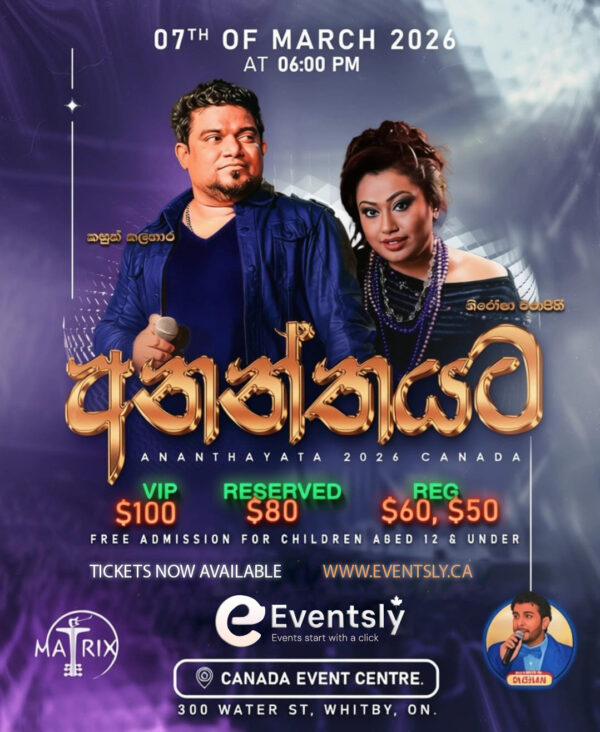 Ananthayata Toronto 2026 brings you an evening dedicated to the timeless beauty of Sri Lankan music. Featuring two of the country’s most loved and respected artists, Kasun Kalhara and Nirosha Virajini, this live concert celebrates songs that have stayed close to our hearts for generations.