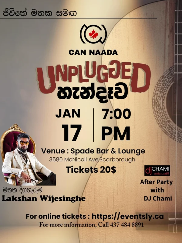 Experience an intimate evening of soulful Sri Lankan music with CAN NAADA – Unplugged හඬන්දෑව, featuring the mesmerizing vocals of Lakshan Wijesinghe. This special unplugged session promises raw emotion, acoustic melodies, and a close connection between the artist and the audience.